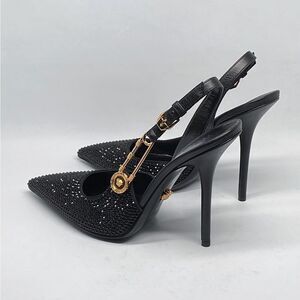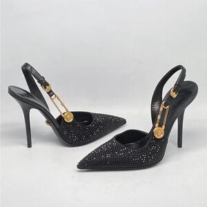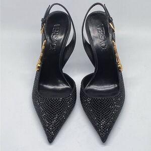 Versace 110MM Embellished Leather Slingback Pumps size 37.5