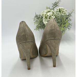 Versace 1969 V Italia Anita Metallic Gold Tone Snake Textured 4” Heels Sz 7.