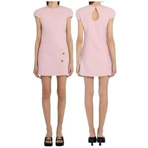 Versace $2125 Medusa Pink Capsleeve Gold Buttons Dress NWT Size IT 44 Medium