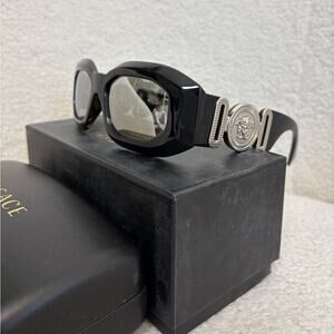 Hardware: Medusa crystal motifs on both temples and crystal accents on lens