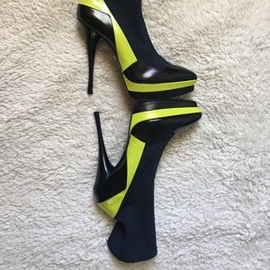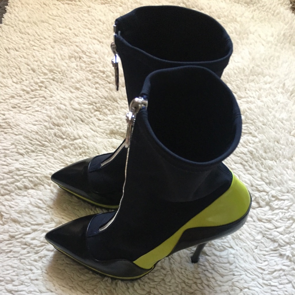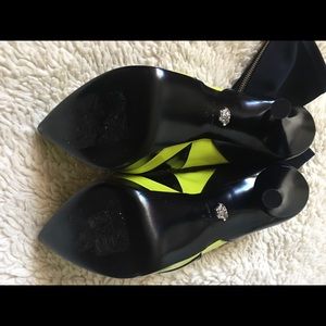 VERSACE Ankle boots. neoprene, faux leather, no appliqués, multicolor pattern, zip, narrow toeline, spike heel, leather lining, leather sole, contains non-textile parts of animal origin. Textile fibers size 41 good condition used once 100% authentic