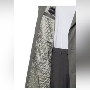 Versace Jeans Overcoat Grey Tweed Pattern Satin Lining size S beautiful medusa buttons