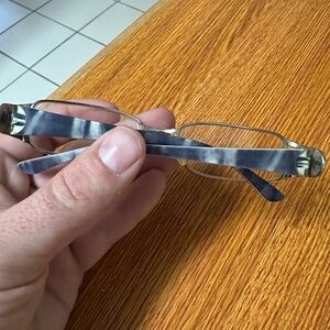 Stylish black eyeglasses featuring silver accents. Perfect for any occasion.