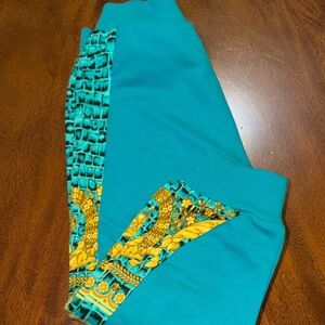Stylish Versace tee featuring a bold gold and green graphic. Perfect for casual wear. Selling as a aet