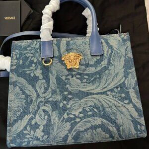 100% authentic Versace Barocco La Medusa Denim Small Tote Bag