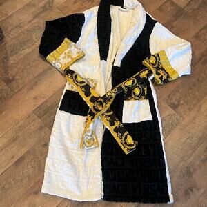 Versace Baroque Gold, Black, and white Long Bath Robe XXL