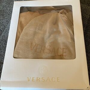Good condition Elegant Versace set in beige. Ideal for stylish warmth.