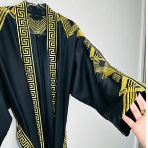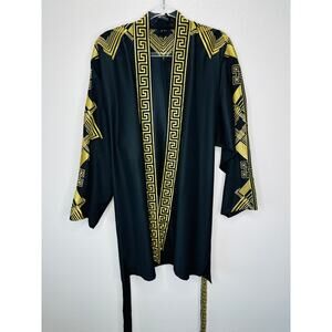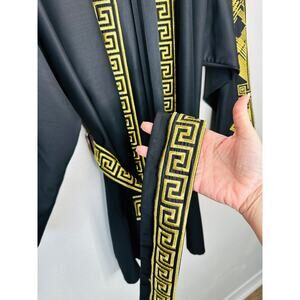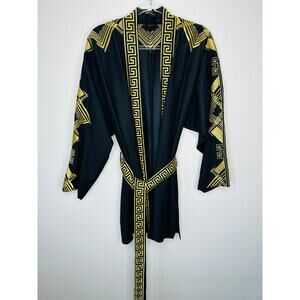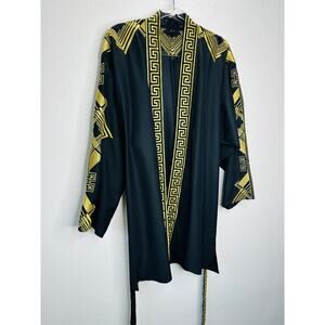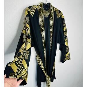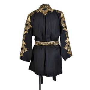 Versace Belted Gold Embroidered Black Wool Blend Kimono Jacket M