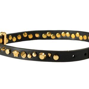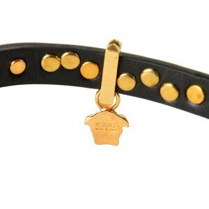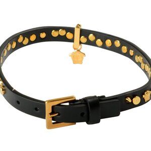Versace Black 100% Leather Gold Color Metal Medusa Head Choker Necklace