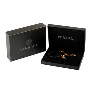 Versace Black Braided Leather Gold Color Medusa Head Charm Adjustable Bracelet
