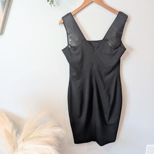 Gianni Versace Chic black cocktail dress from 2009 featuring elegant sequin accents and a body fitting style. Ideal for sophisticated occasions and evening attire. size 44. measurements in photos. excellent pre-loved condition. no flaws.