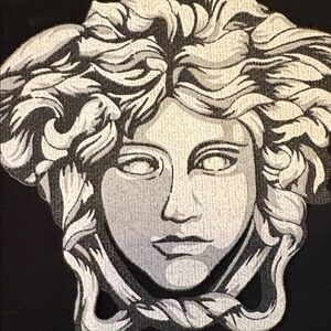 Classic black Versace top featuring the iconic Medusa graphic. Stylish and bold.