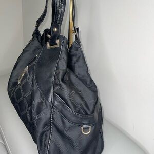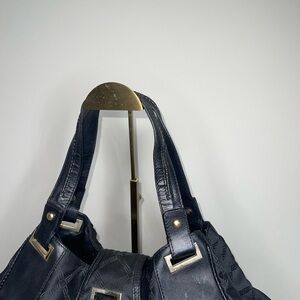 Authentic Versace Medusa Greek Key Fabric Patent Leather Trimmed Shoulder Bag