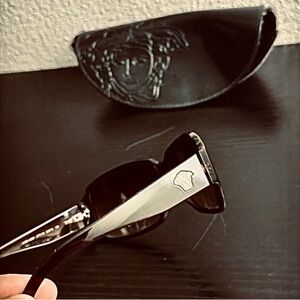 Elegant women’s sunglasses with a black frame and brown lenses. Includes a stylish case with embossed design.