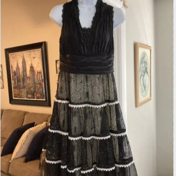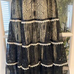 Gorgeous black tulle with sequins and off white lace trim on the skirt