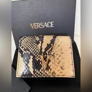 Versace Black and Cream Snakeskin Leather Wallet NWT