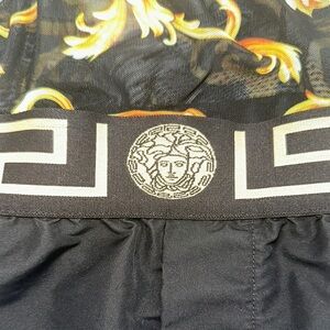 Versace Black and Gold Athletic Shorts with Greek Key Waistband