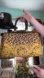 Elegant satchel with bold leopard print. Features black leather and gold accents. Ideal for a chic statement.