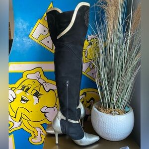 Versace Black and Gold Over the Knee Boots