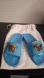 Elegant blue slippers with iconic gold Medusa emblem. Perfect for casual wear.