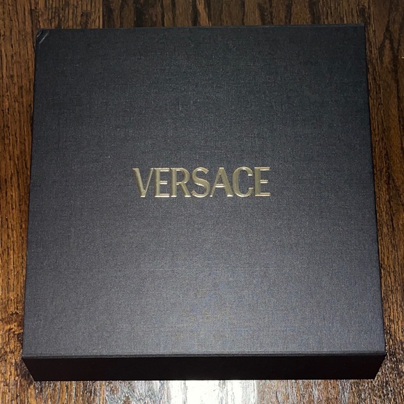All black and gold collapsing box from Versace. 12”W x 12”L x 2”H