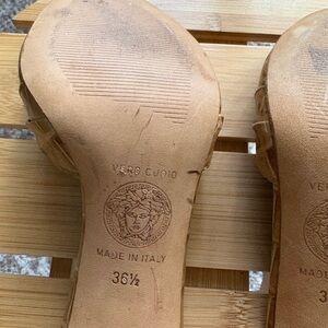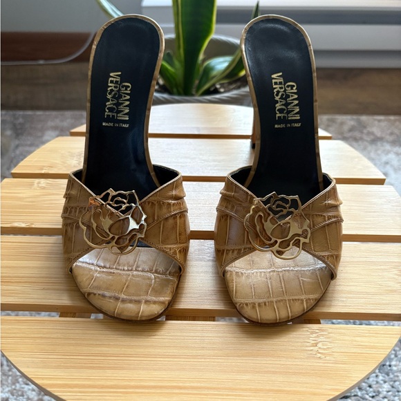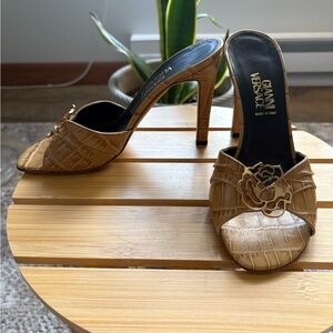 Versace Brown Croc-Embossed Mules with Gold Detail