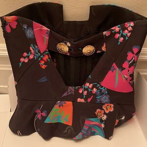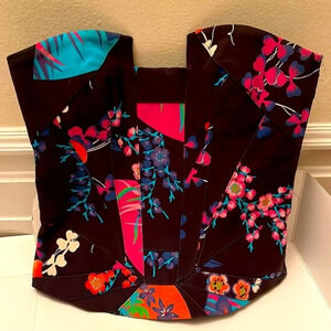 Floral Silk Corset Top Cut Out Back Rare
