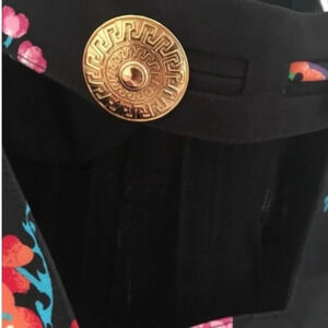 Versace x H&M size 4 floral print strapless bustier corset with cut out back stop and two iconic gold plated medusa button detail on the back.