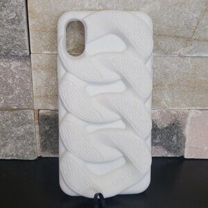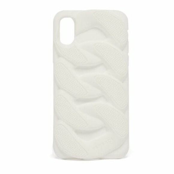 iPhone X case from Versace. Decorated with an embossed chain motif and a logo.