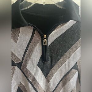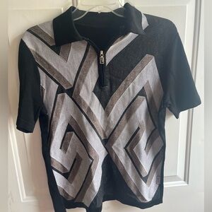 Versace Classic Men’s Tight Knit Classic Retro Pattern 1/4 Zip Polo Medium