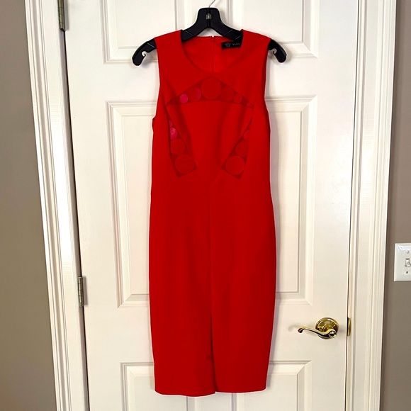 Versace Collection Sexy Red Sleeveless Pencil Cocktail Dress with Leather Embellishments