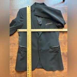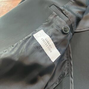 Versace Collection Black Leather Accent Slim Luxury Suit Coat Blazer Size 48