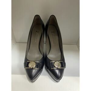 Versace Collection Black Leather Platform Pumps with Medusa Medallion Size 37