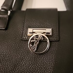 Authentic Versace Collection Black Leather Top Handle/Shoulder Handbag in excellent condition, no flaws to mention. Measures W 16in, H 10.5in D 5in, Handle drop 14in, Shoulder strap 50in.
