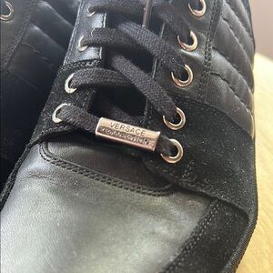 Step up your style with these sleek black high-top sneakers. Perfect for any casual outing.