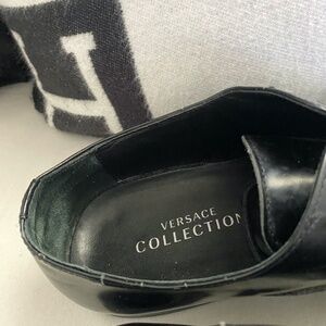 Versace Collection Mens Black High Shine Leather Cap Toe Oxfords SZ10.5 US/43 EU