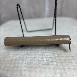Genuine taupe colored pebbled leather outer