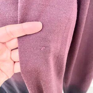 This is a gently used Versace Collection Purple Ombre Men's Button Front Wool Silk Cardigan Size XL. In very good condition. Minor signs of wear throughout. A minor hole on front and on back of cardigan. See all pics for condition.