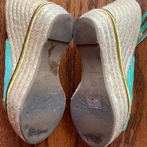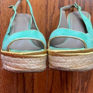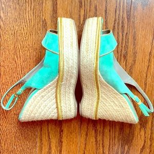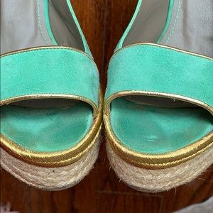 LVersace suede mint color wedges with gold thread accent. Size EU 38. Made in Spain. Heel wedge 5in. No box.