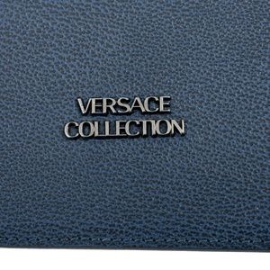 This is authentic Versace Collection Navy Blue Textured Leather Cover Case
