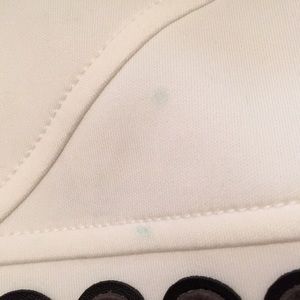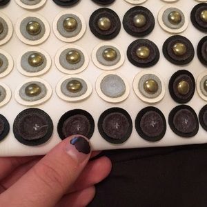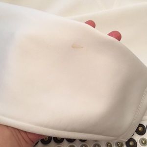 This item is gently used! Minor stains on sleeves and on front of top, a few of the metal bullets on the bottom of the top are missing. All wear and tear is pictured. Make me an offer if you like this item! I’ll entertain anything! Comes with Versace hanger in garment bag.
