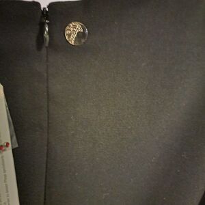 An elegant fitted little black dress featuring a front contrasting baroque embroidery, concealed back zip fastening.
