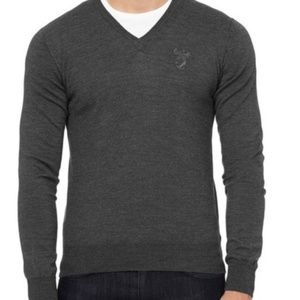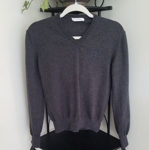 Layer up in luxury with this fantastic Wool V neck sweater. Stylish fit, solid pattern, Medusa head logo. This is technically a mens sweater but I absolutley think due to smaller fit and tapered waist could easily be worn unisex. Fantastic piece! High quality and condition. Please refer to pics for approximate measurements and fabric content.