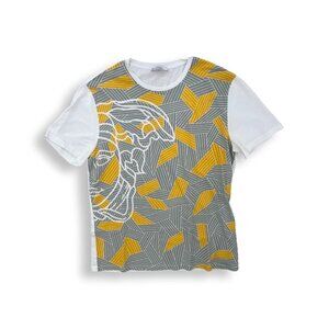 Versace Collection abstract print gray yellow logo tee shirt size XL