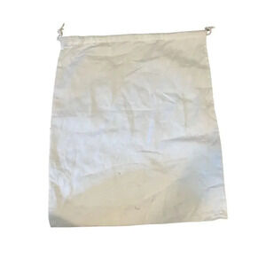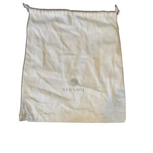 This Versace drawstring dust bag is crafted from fabric and features a white cream exterior with a logo pattern. includes a drawstring closure and logo accent. The bag is in good condition but has two marks on the back as shown in photos.