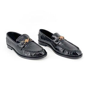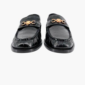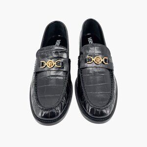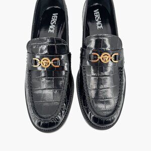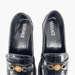 Versace Croc Embossed Medusa '95 Loafers Size 39.5 US 9.5 Black Leather Flat