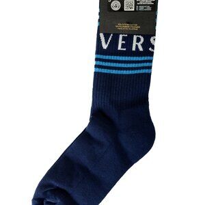 Versace Dark Blue & White Logo Print Athletic Socks sz L