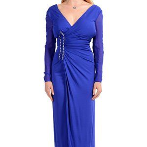 VERSACE WOMEN'S BLUE DEEP V-NECK OPEN BACK MAXI EVENING DRESS US XS IT 38