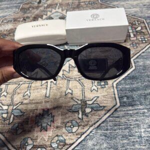 Make a bold statement with these authentic Versace sunglasses, featuring a sleek black rectangular frame paired with the signature gold Medusa medallion detailing on the temples. These shades perfectly combine timeless Italian craftsmanship with high-fashion edge β a true luxury must-have.