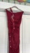 Strappy, backless, high slit with gold button accents, and side zip. Ready for the red carpet!